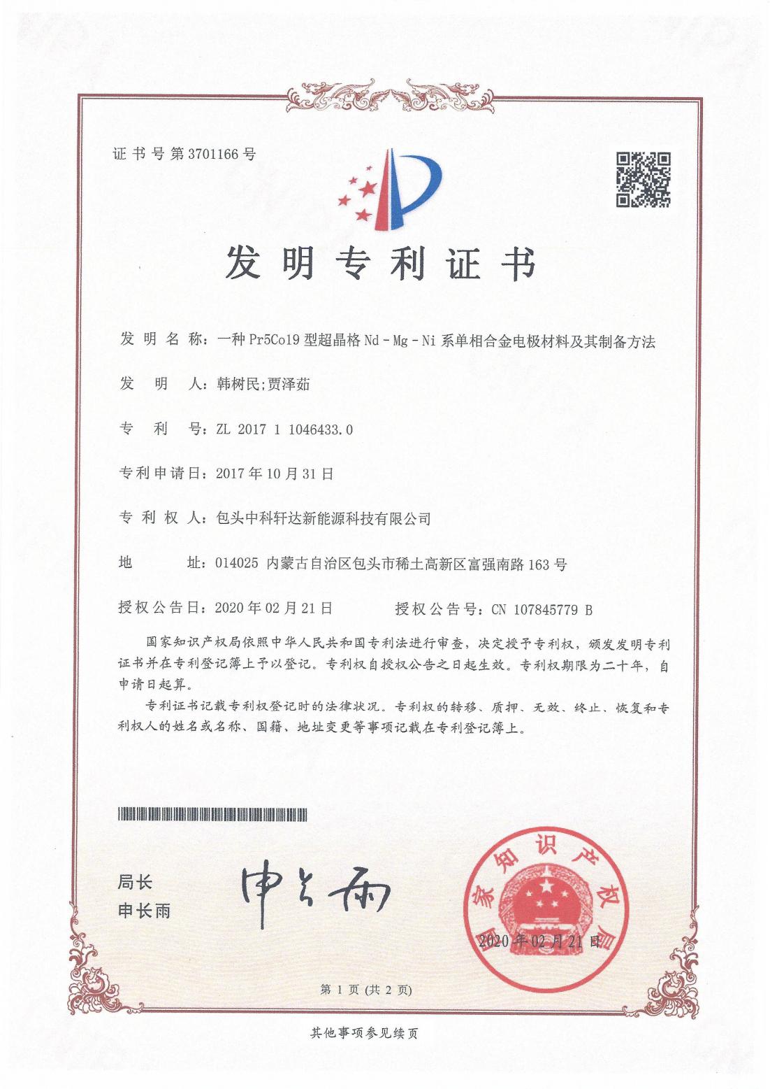專利證書